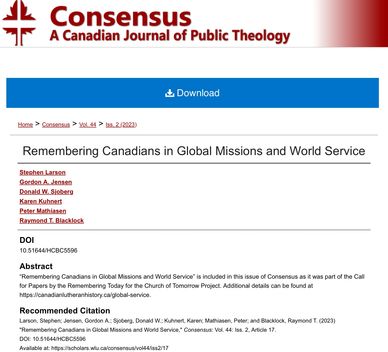 Copyright © Remembering Today For The Church Of Tomorrow Project (Canadian Lutheran History).This site is developed with the presumption of grace. It relies on the documents of many sources and the opinions of many individuals.. Should you have concerns about any of our content please contact us.